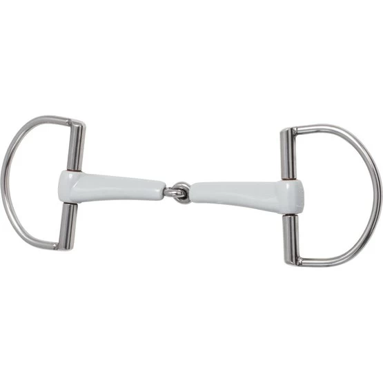 Unser neues einfach und doppelt gebrochenes Mundstück aus Kunststoff ist besonders schlank dimensioniert- breite Auflageflächen und eine geringe Höhe sorgen für mehr Komfort auch in kleineren Pferdemäulern. Die Oberfläche des Kunststoffes ist sehr glatt und gleitet auch bei wenig speichelnden Pferden gut im Maul. Das mit breiter Auflagefläche auf der Zunge und den Lefzen liegende Mundstück geht sanft modelliert in eine rotiert eingepasste Olive über. Die Gelenke und das Mittelstück sind fein gearbeitet und der geringen Höhe des Mundstücks angepasst montiert. Ruhiges Gleiten der Gebissringe wir durch eingearbeitete Kupferbuchsen garantiert.