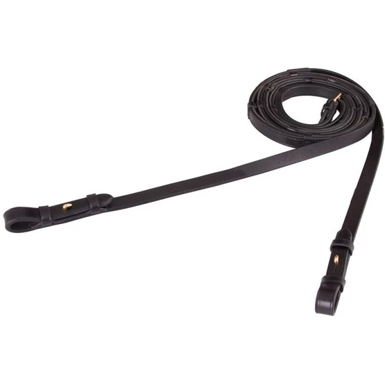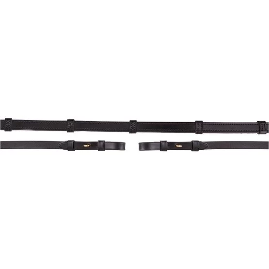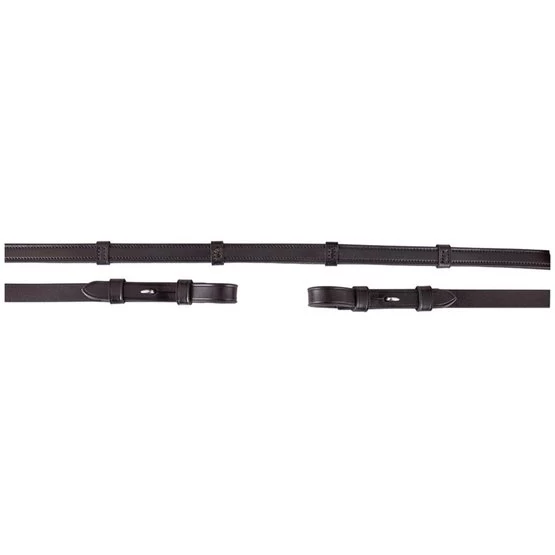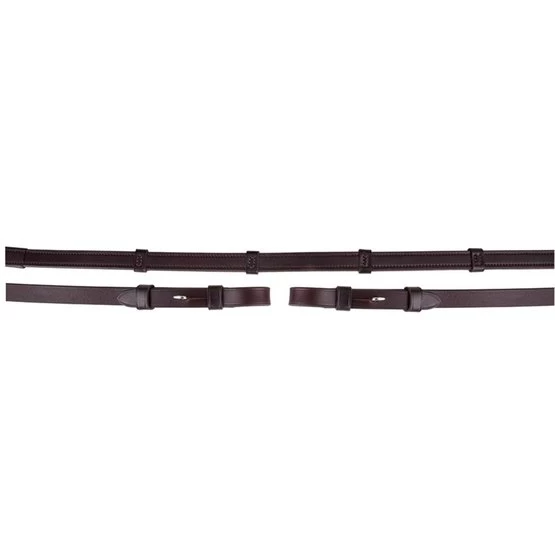 Zügel aus Leder, Innenseite hat eine Gummischicht, mit Lederstegen und Zaumhaken, 16 mm. Ohne Martingalschieber.