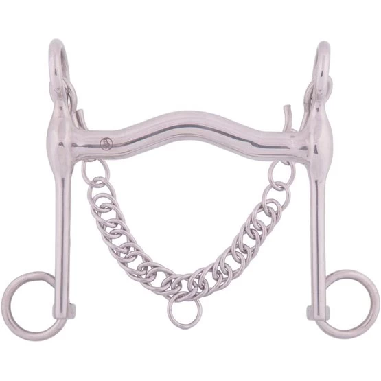 Edelstahl massiv, Länge der starre Anzüge 140 mm. Gebissdicke von 15 mm. Mit Kinnkette.