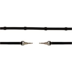 Dieser Lederzaum besteht aus hochwertigem Leder, das robust ist und lange schön bleibt. Der Zügel ist in der Mitte geschlossen und hat eine Stärke von ca. 13 mm (4/8“). Der Zügel hat auf beiden Seiten nicht weniger als vier Anschläge. Mit den starken Karabinerhaken an den Enden können Sie die Zügel einfach am Gebiss befestigen.