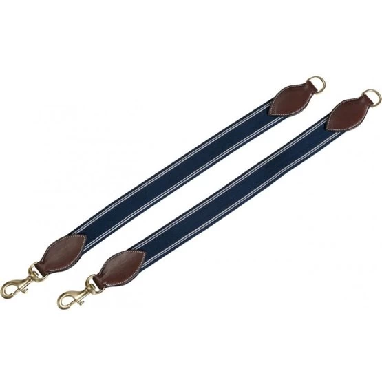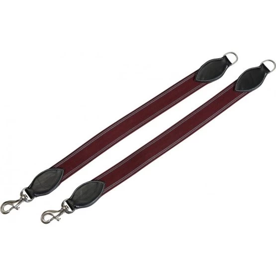Elastisch an Lederriemen mit weißen Nähten und Schnellverschlussschnallen.
