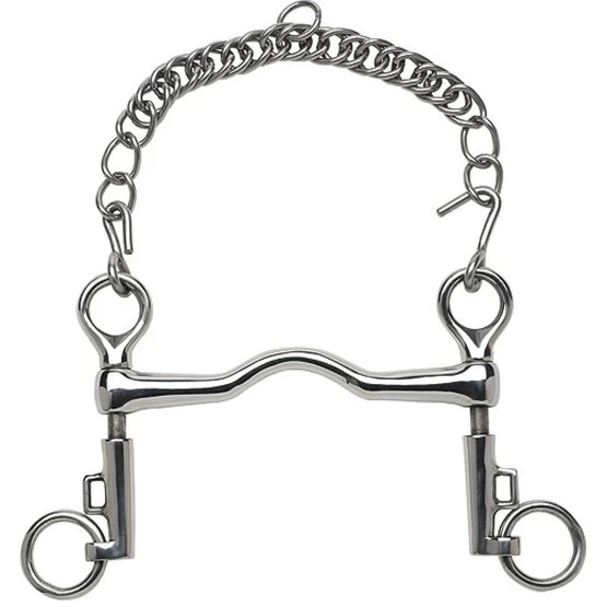 Dressurstange aus Edelstahl mit Pumpwirkung, Mundstück mit leichtem Bogen. Dicke des Mundstücks: 15 mm, Länge des Kiefers: 110 mm, Mundstück: fest