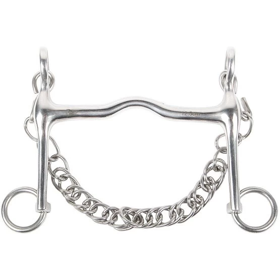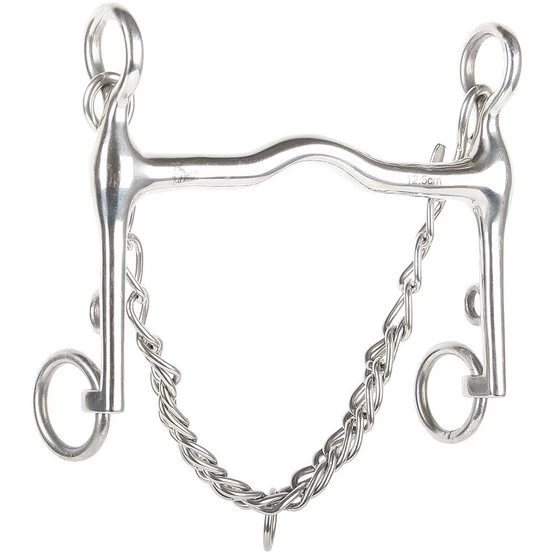 Kandarengebiss aus Edelstahl mit leichter Zungenfreiheit. Wird inklusive Kinnkette geliefert.