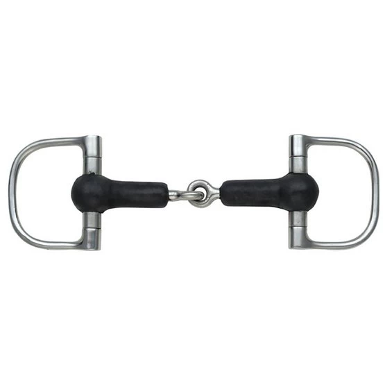 Dieses mit Gummi überzogene Bit hat D-Ring-Seiten, um das Lenken zu erleichtern und zu verhindern, dass das Bit durch den Mund gezogen wird. Gut für junge Pferde.