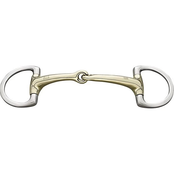 Trense in D-Ring-Form mit einfach gebrochener dynamischer Unterlage. 14 mm dick. 11,5 cm breit. Material Sensogan mit Edelstahlringen. Die ergonomische Form sorgt für eine weiche und gleichmäßige Druckverteilung. Effektive und direkte Wirkung der Zügelhilfen. Das Mittelteil ist um 45 Grad geneigt, damit das Gebiss optimal auf der Zunge liegt. Stimuliert die Annahme des Gebisses. Geeignet für sensible Pferde oder Pferde mit dicker Zunge. Liegt stabil im Mund durch die seitlichen Begrenzungen der festen Ringe.