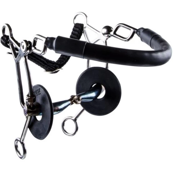 Diese Seitenstück ist eine Kombination aus einem Hackamore und einem Gebiss. Die Hackamore-Kombination ist ein Gebiss mit Hebelwirkung und übt Druck auf Nase, Kinn , Genick und im Mund aus. Je länger die Schenkel des Hackamores sind, desto stärker ist die Wirkung. Diese Kombination mit langen Schenkeln hat eine schärfere Wirkung als die Hackamore Kombi Kurz. Diese Gebisse werden oft bei sehr eifrigen Pferden im Parcours verwendet. Wegen der Hebelwirkung ist dies ein recht scharfes Gebiss und daher für den unerfahrenen Reiter nicht geeignet.