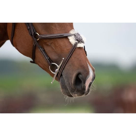 Ein einfach gebrochenes Gebiss hat einen Scharnierpunkt, wodurch weniger Druck auf die Zunge ausgeübt wird als bei einem doppelt gebrochenem Mundstück. Ein einfach gebrochenes Mundstück übt hauptsächlich Druck auf die Laden und die Seiten der Zunge aus und kann sich auch auf den Gaumen auswirken. Ein einfach gebrochenes Mundstück wird als Standardmundstück betrachtet.